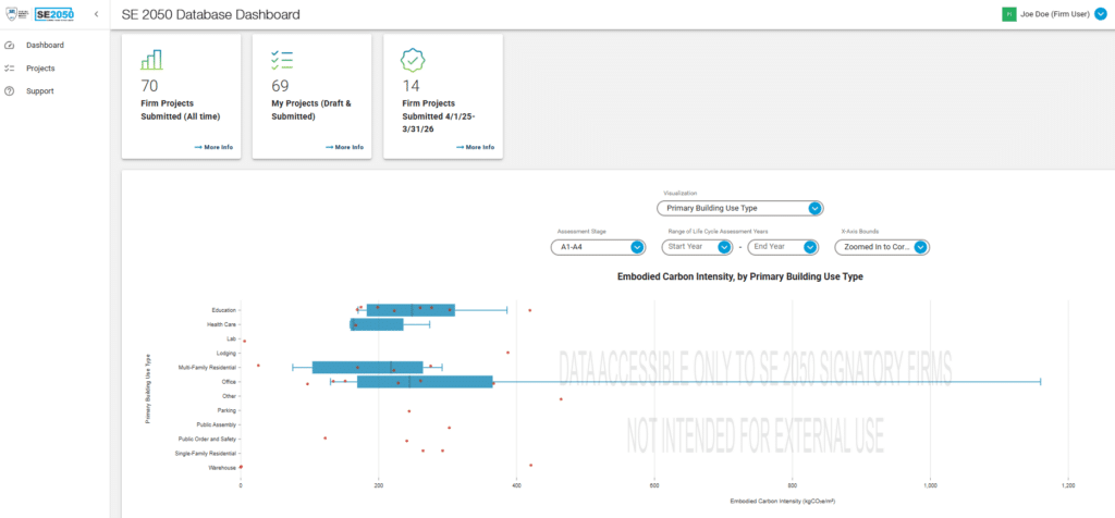 Following the launch of the database, firms will have the option to transfer their project data from the existing database to the new database. In accordance with the existing User Agreement, SE 2050 will distribute a form for signatory firms to fill out, which approves/denies SE 2050’s permission to transfer their data to the new database. Signatory firms will be given a 45-day period to opt in or out of the one-time data transfer from the existing to the new database. All data will need to be manually re-entered after the one-time data transition.